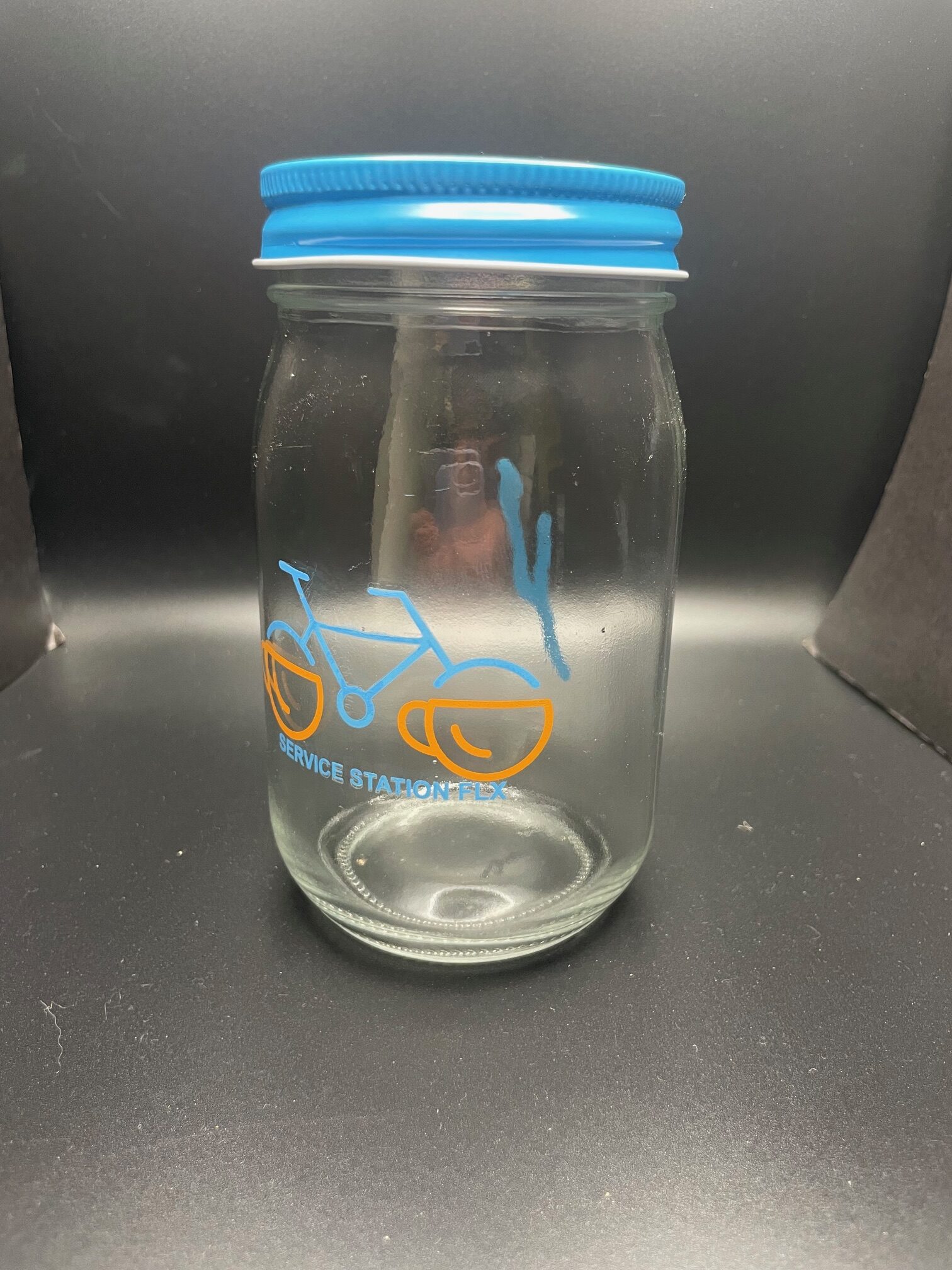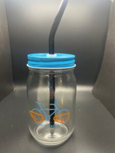 16 oz Glass Mug With Roastery logo on the front and Keuka Lake on the back. Lid color may vary. Glass straw included.